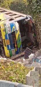 चालक का बस से नियंत्रण छूट गया और बस अनियंत्रित होकर पलट गई